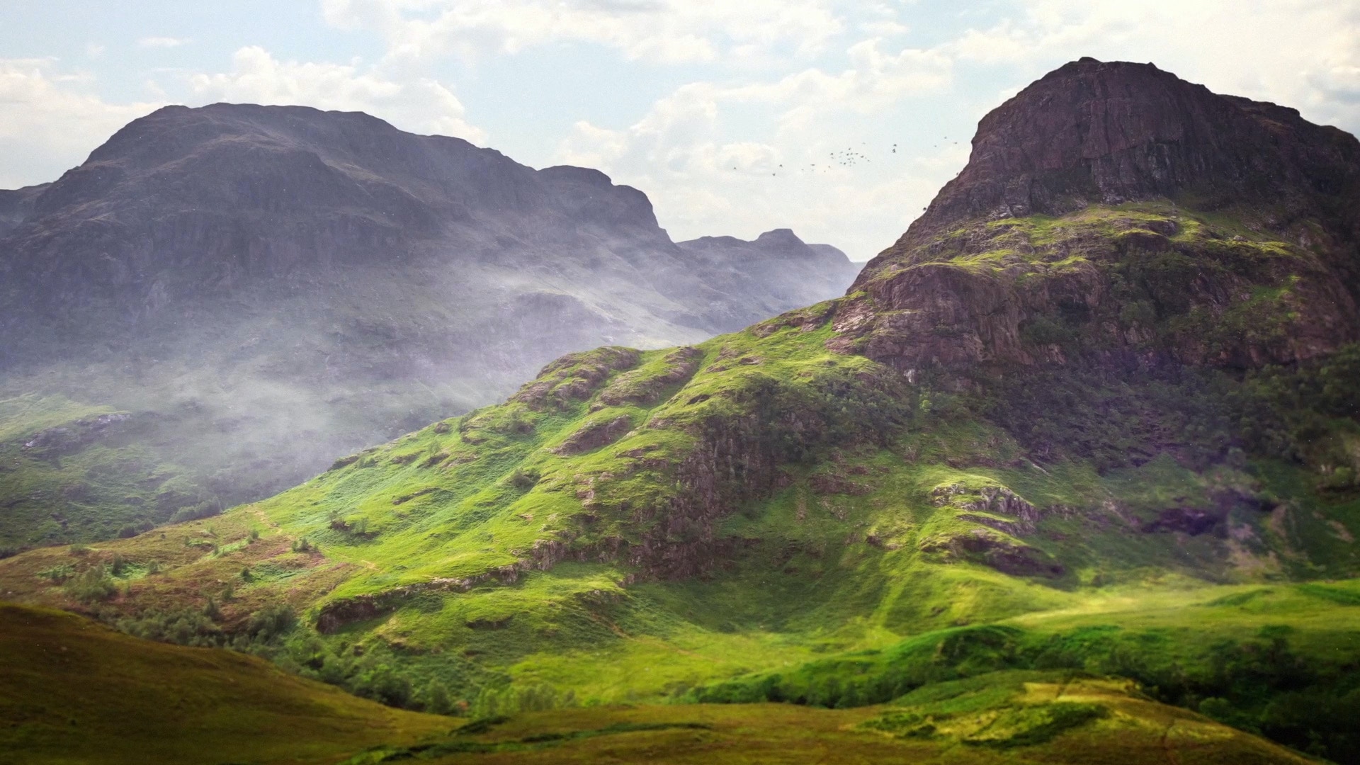 Using only stills, storyboards and the odd bit of eagle stock, it was my role to create moving images from these to be used to tell the story of curling and the drama involved. Most of the opening shots below were mine including the winter lake freeze. I also helped composite the 3D shots of the curling stones and created the cloud pull back at the end of the piece.